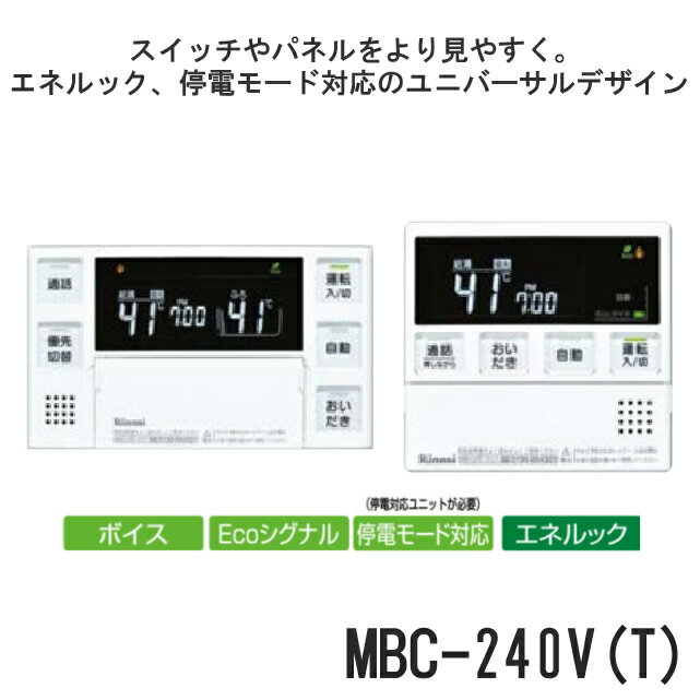リンナイ MBC-240V(T) 浴室・台所リモコンのセット 取扱説明書付