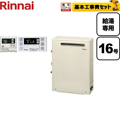 【工事費込みセット(商品+基本工事)】[RUX-A1613G-13A-MC-140V-KJ]【都市ガス】 リンナイ ガス給湯器 屋外据置型 16号 給湯専用 ユッコ ボイスリモコン付属 接続口径:15A 【送料無料】【給湯専用】【RUX-A1613G】